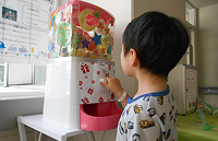 日々治療を頑張る子ども達を応援するため、病院にガチャガチャを設置し、景品を定期的に補充する、プロジェクトサンタのメインの活動です。