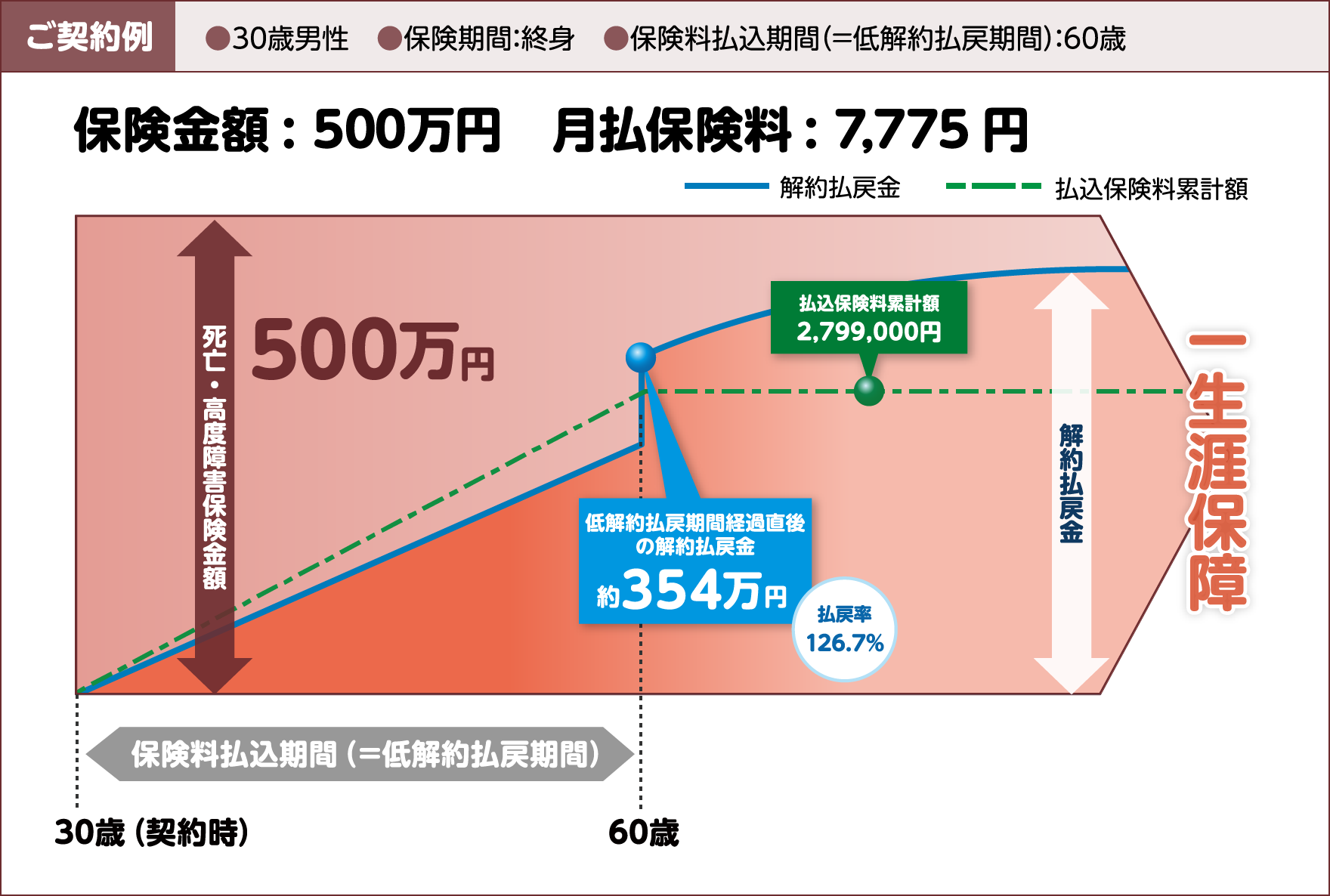 一生涯の死亡保障に加え、長期的な貯蓄機能も備えています。