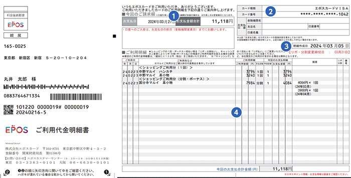 - ※ご利用状況により、ご利用代金明細書は封書・はがきのいずれかでお送りします。