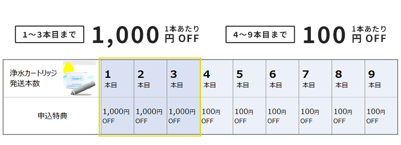 また、上記特典は対象外とさせていただきます。 - ※特典の適用は「タカギ浄水カートリッジ定期お届けサービス」のご利用分に限ります。