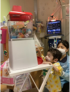 生まれてからずっと病院にいる子ども達にとっては病院で回すガチャガチャが人生で初めてのガチャガチャの子もいます。おうちの方もガチャガチャが病院でできること、また治療の頑張りに繋がることに大変感銘を受けられています。(保育士さんより)