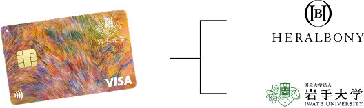 - ※ご利用額に応じて還元されるポイント(200円につき1ポイント・還元率0.5%)のうち、0.1%分を岩手大学とヘラルボニーへお渡しします。